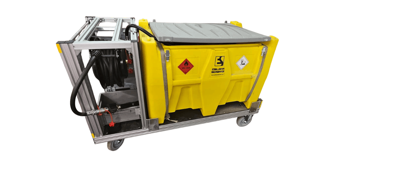 Auf diesem Rollcontainer wird Diesel gelagert und bei Bedarf zu größeren Einsätzen transportiert, um die Treibstoffversorgung sicherzustellen.